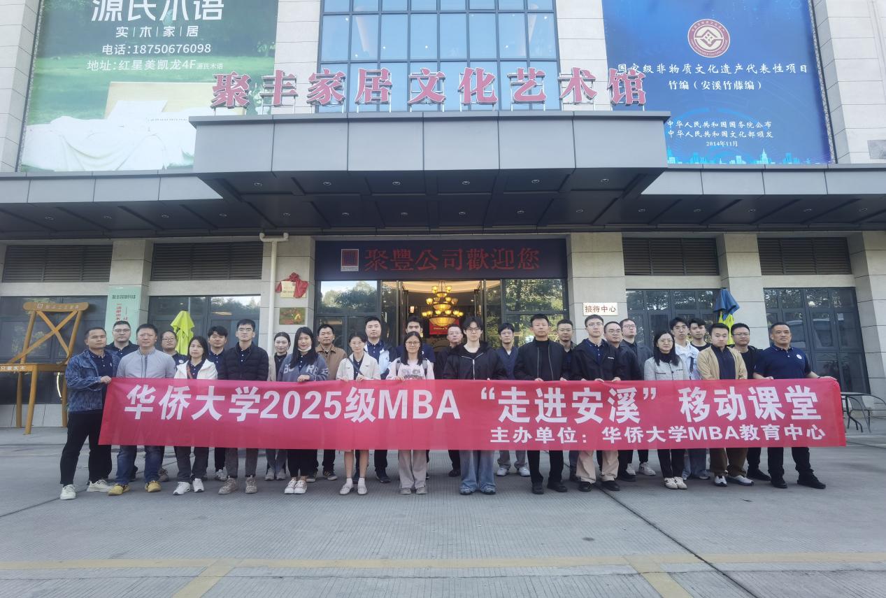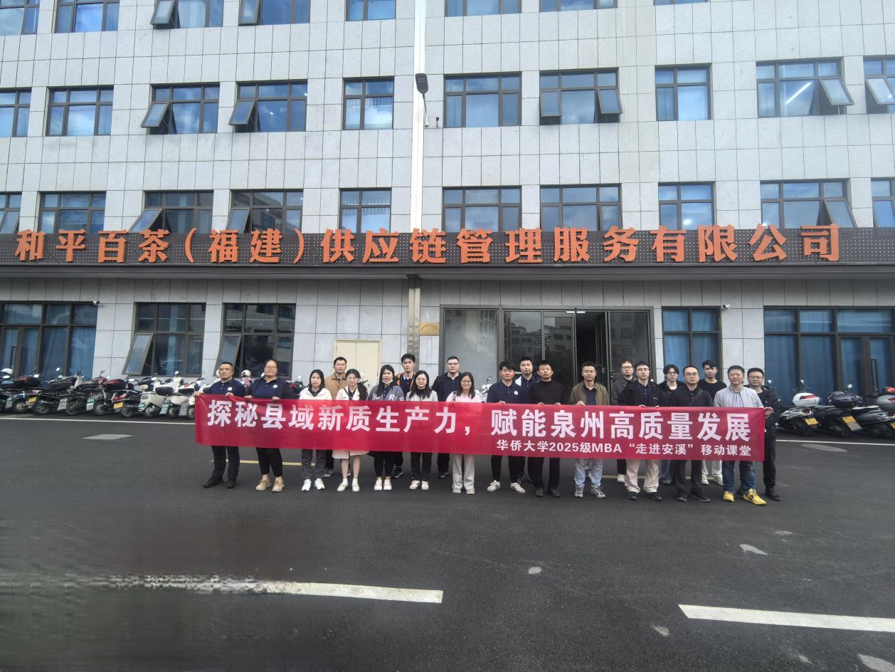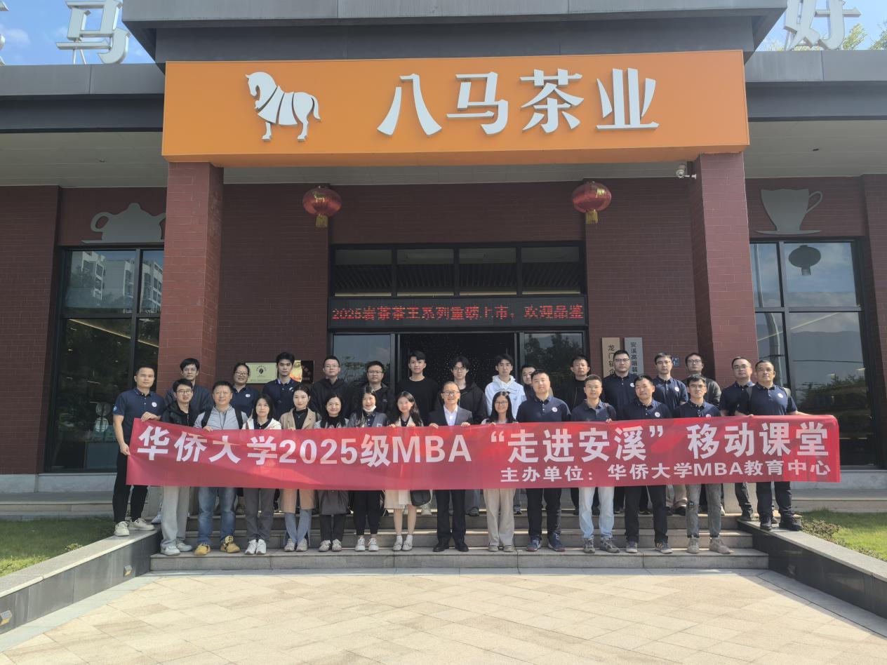 为进一步深化校企交流合作,推进产教深度融合,共同培养顺应科技发展趋势、满足产业转型升级要求的高素质应用型人才,赋能新质生产力发展,12月20日,华侨大学MBA教育中心走进安溪开展实践教学活动,通过实地考察、调研访谈、座谈交流等方式,为安溪茶企及藤铁家居企业转型升级和产业高质量发展提供智力支持和人才支撑。活动以“探秘县域新质生产力,赋能泉州高质量发展”为主题,由华侨大学MBA教育中心主办,华侨大学2025级MBA泉州班师生共计40余人参加活动。